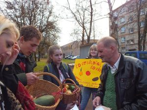 Kalnciema vidusskolas jaunieši cienā ciema iedzīvotājus ar ekoloģisku, vietēju pārtiku