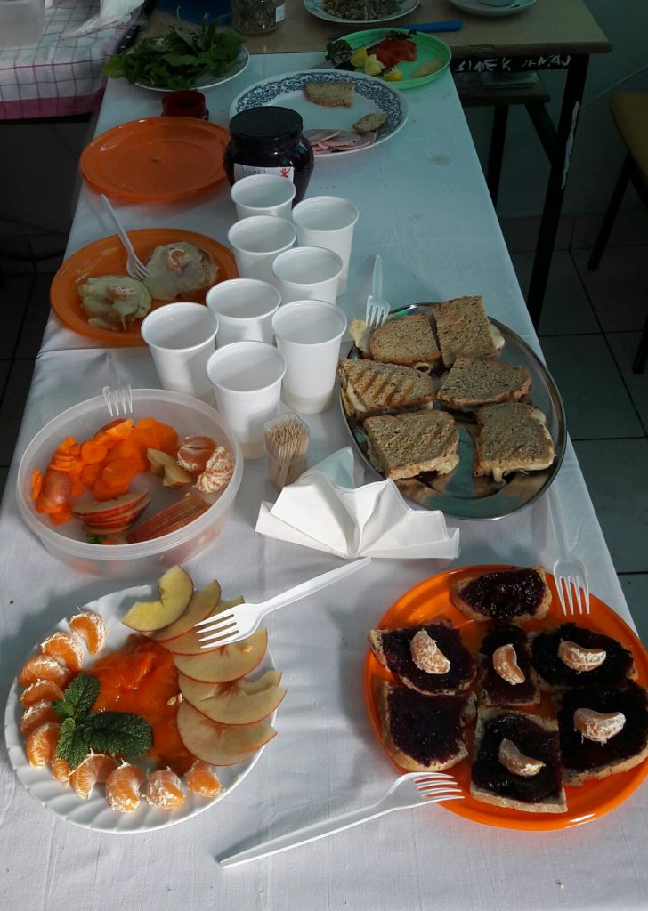 To był bardzo dobry pomysł, aby uczniowie działający w Eko – Komitecie pokazali swoim kolegom, w jaki sposób przygotować dania i napoje z wykorzystaniem sezonowych i lokalnych produktów. Wsród wykorzystywanych składników znalazły się warzywa, zioła, takie jak melisa, szałwia, rumianek hodowane przez uczniów w szkolnym ogrodzie. Dostepny był również miód ze szkolnej pasieki.