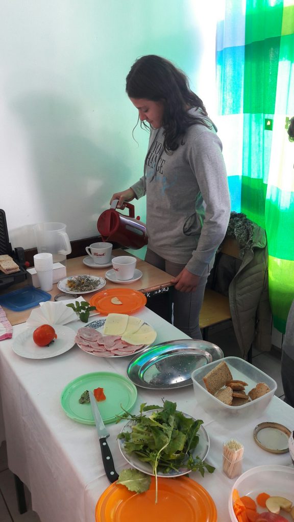 Z własnej inicjatywy, uczniowie z Eko – Komitetu chcieli przygotowywać “odpowiedzialne” kanapki i napoje dla swoich szkolnych kolegów, których nie stać było na zakup posiłku w szkole. Pierwszym warunkiem, aby to uczynić było wygospodarowanie miejsca do przygotowywania posiłków. W tym pomogli nauczyciele, którzy zebrali fundusze na wyposażenie pomieszczenia, które przekształcono na małą uczniowską restaurację.